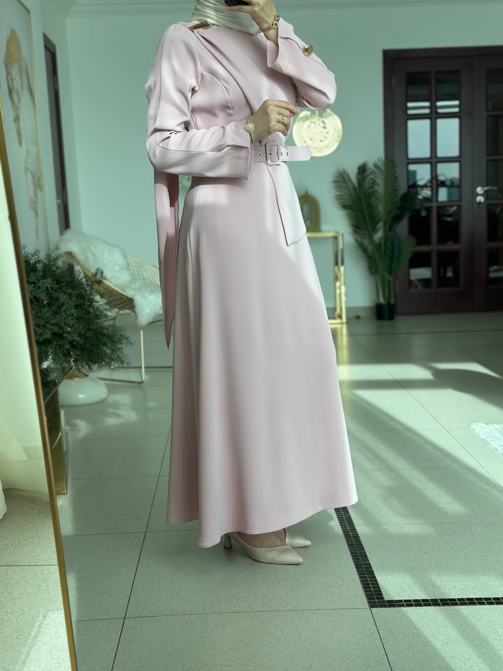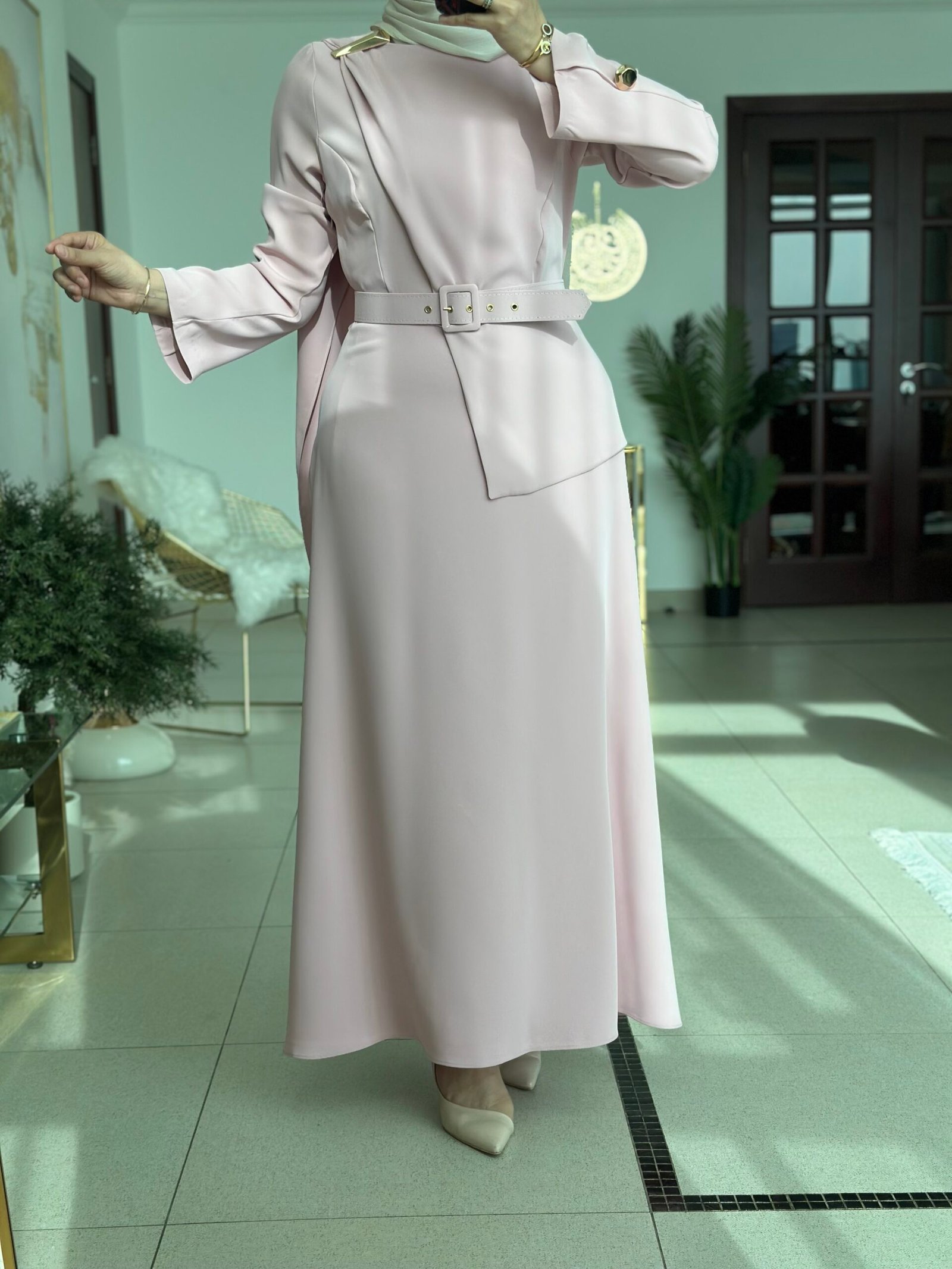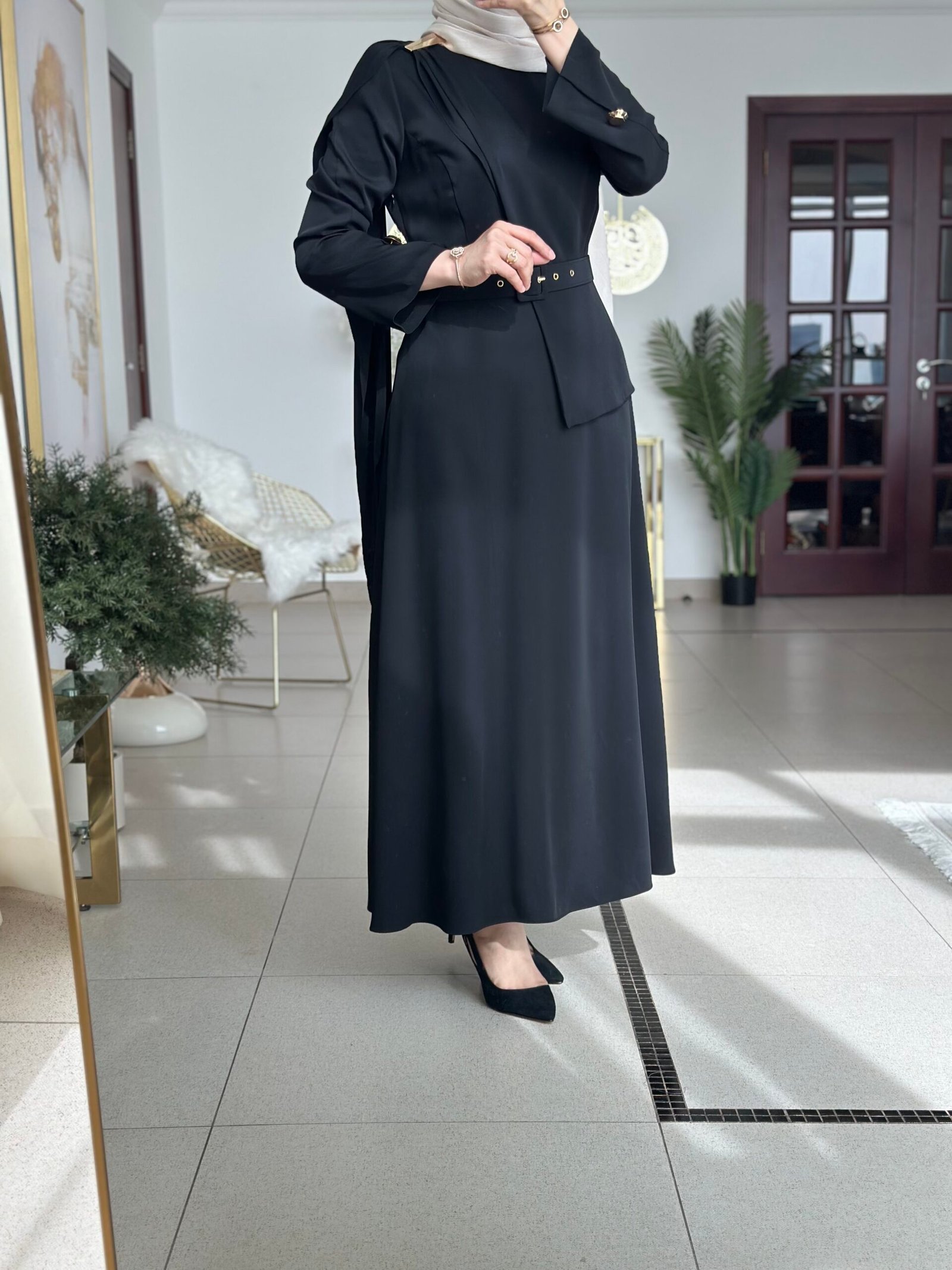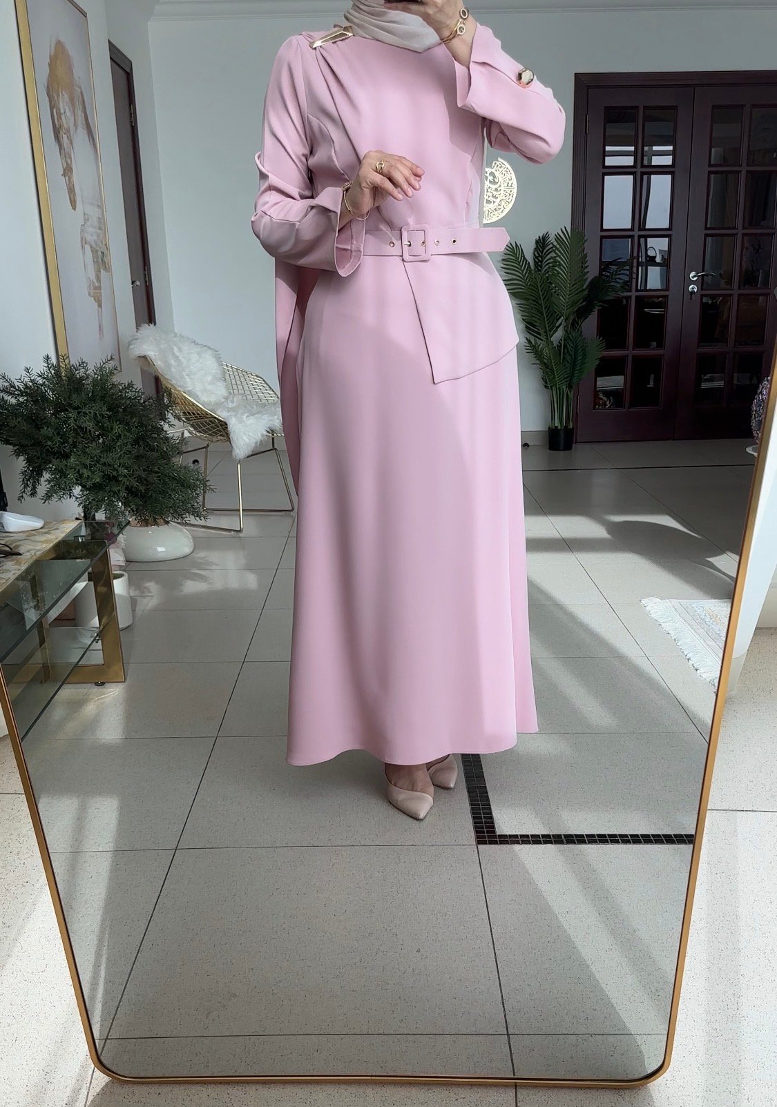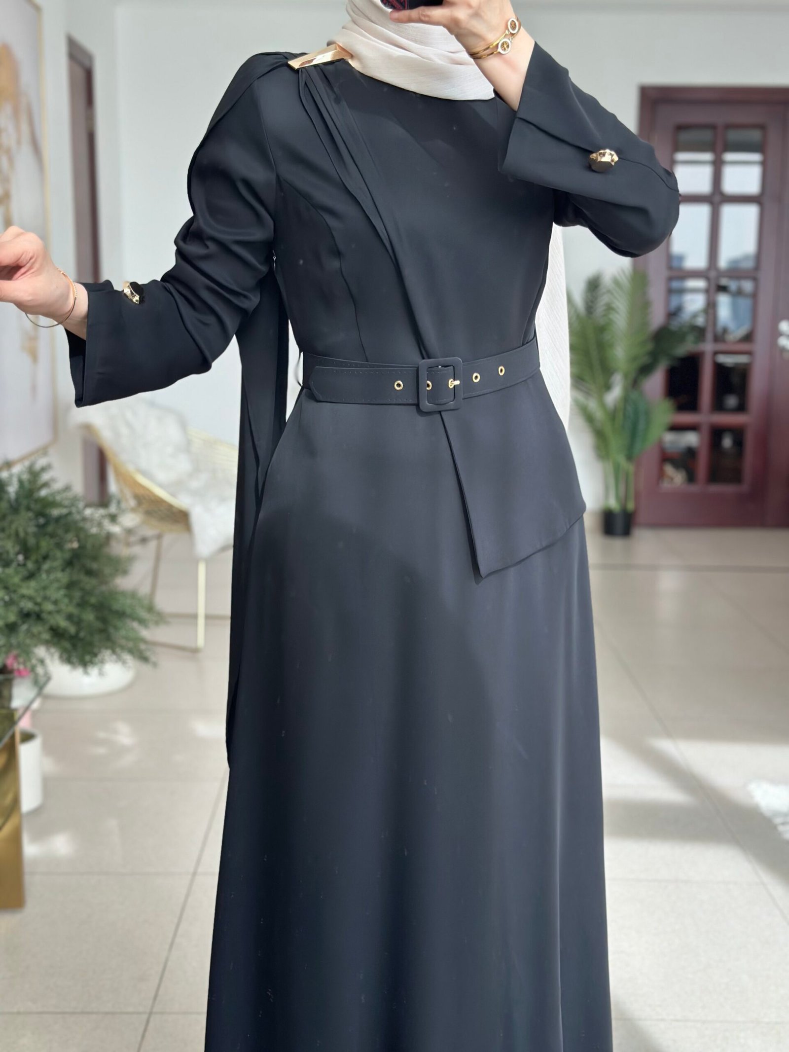 فستان كريب ناعم بتصميم العصر الروماني المميز بالبروش على الكتف