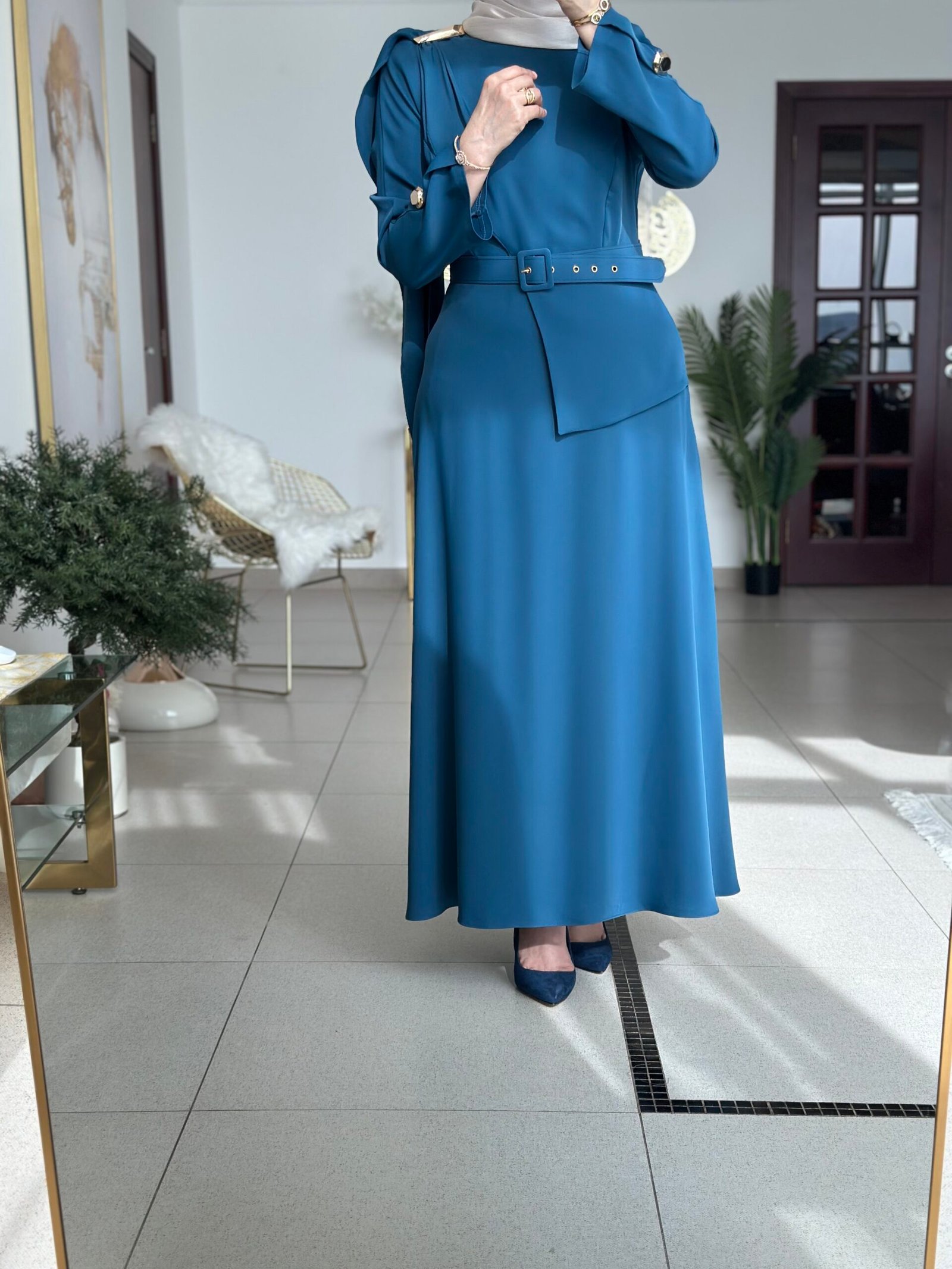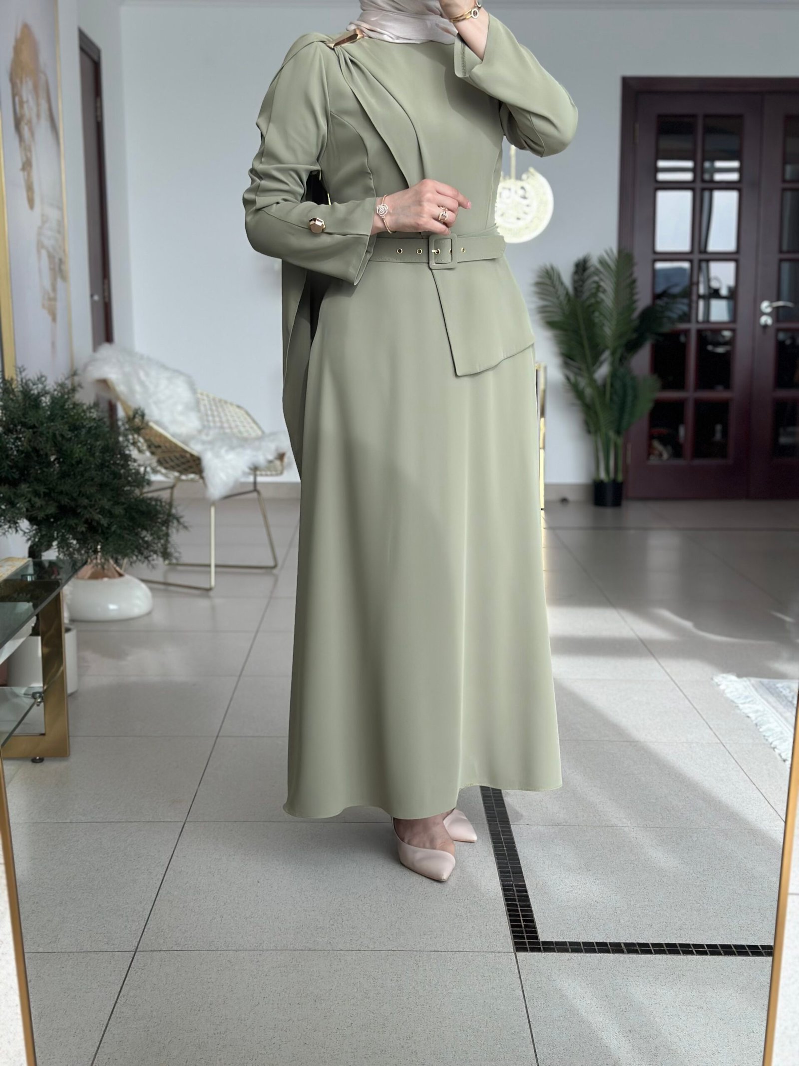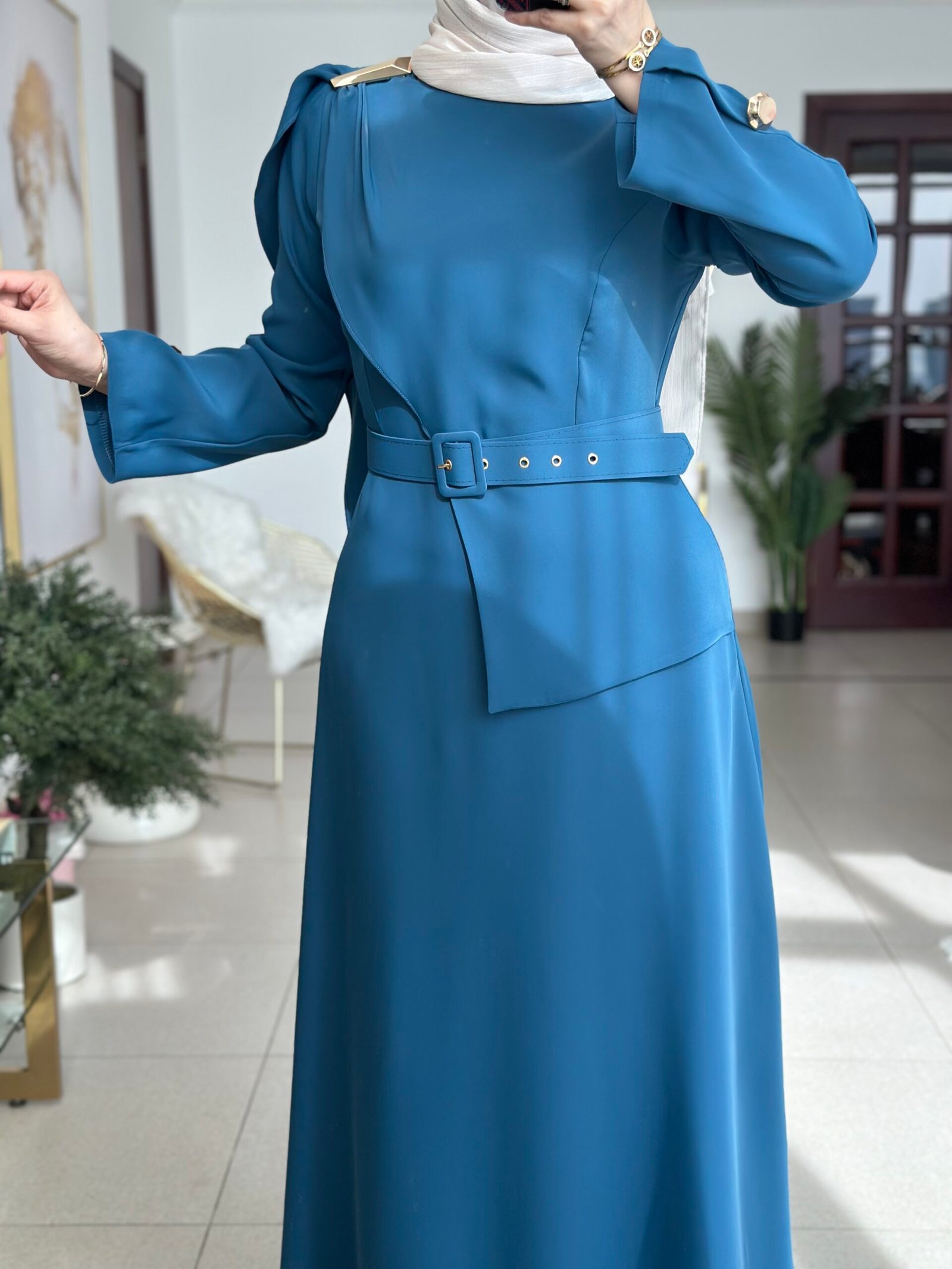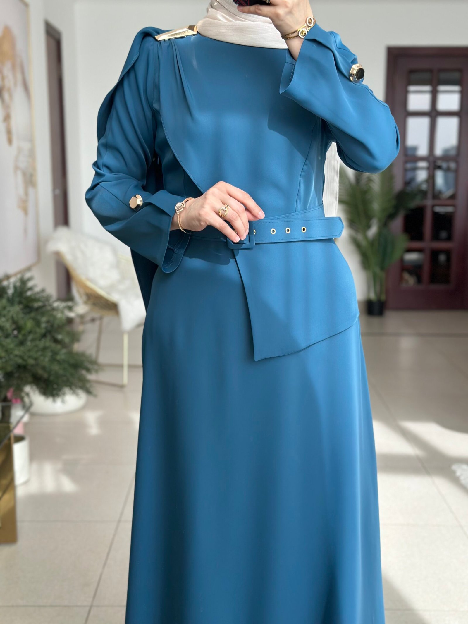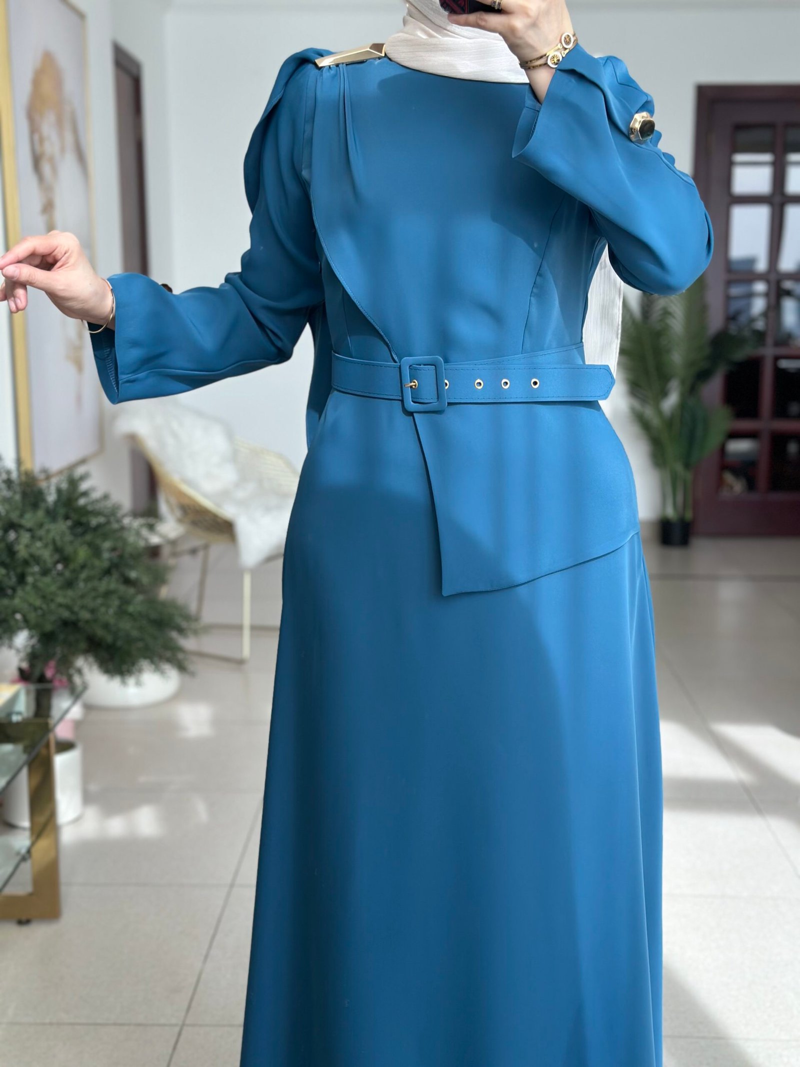 فستان كريب ناعم بتصميم العصر الروماني المميز بالبروش على الكتف